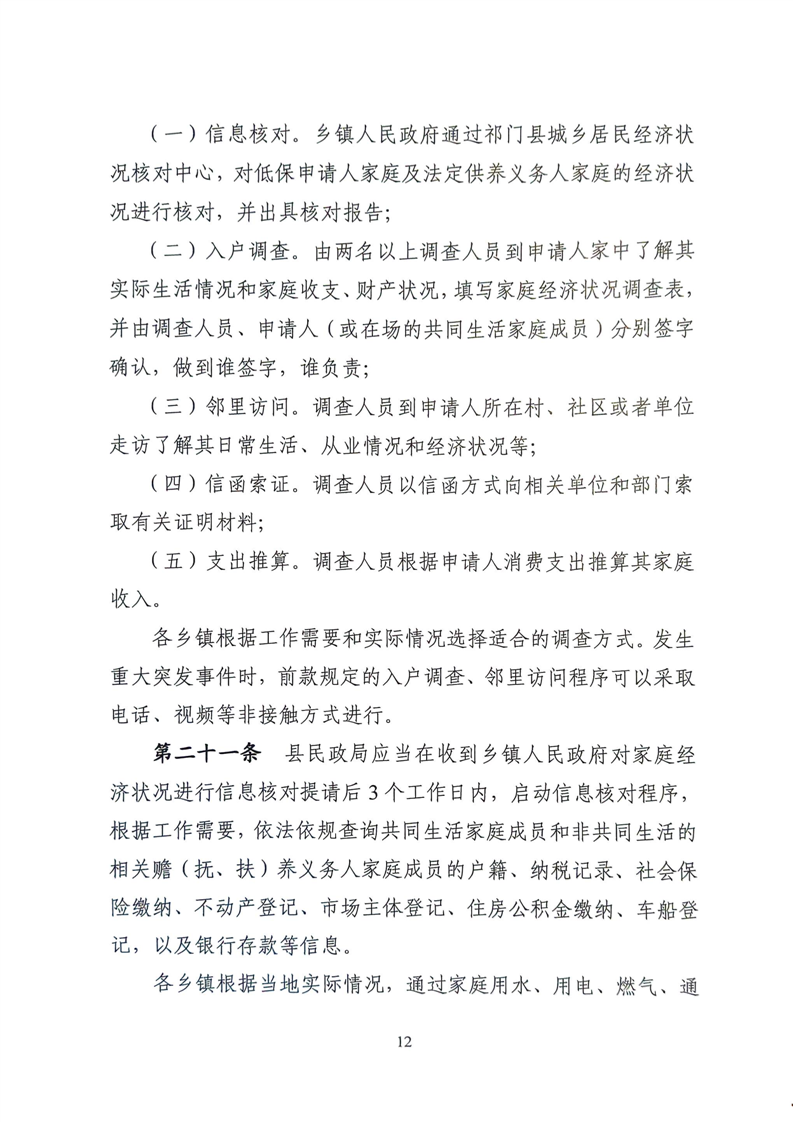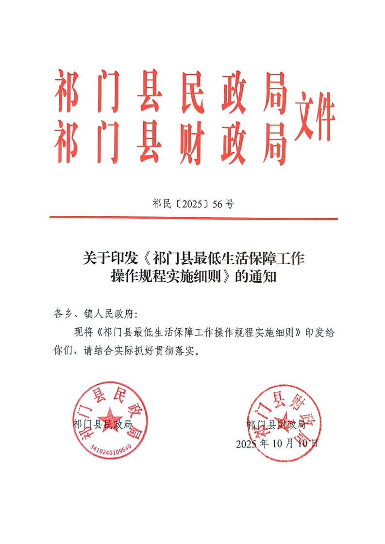 关于印发《祁门县最低生活保障工作操作规程实施细则》的通知