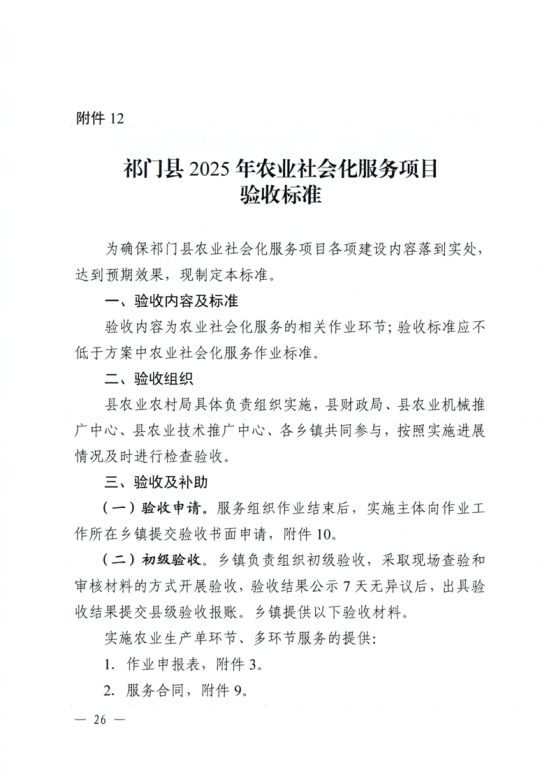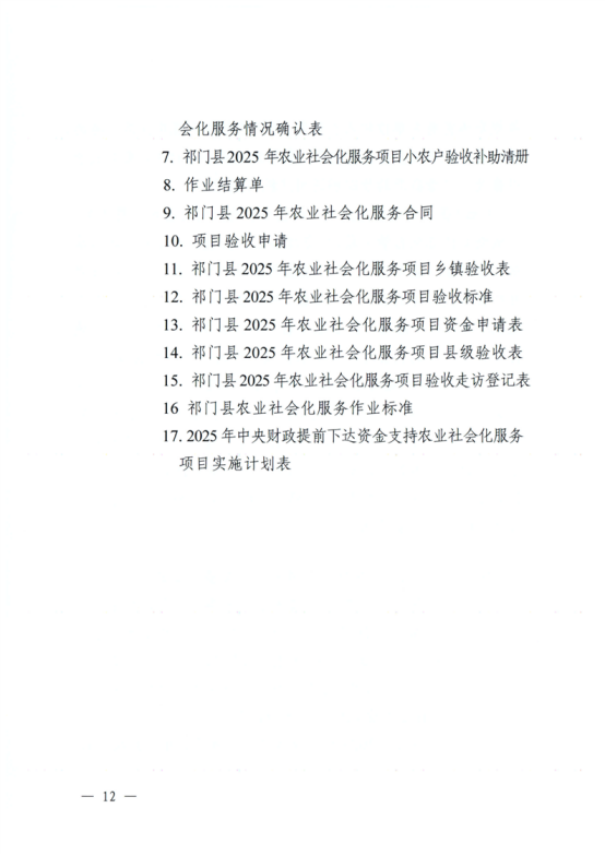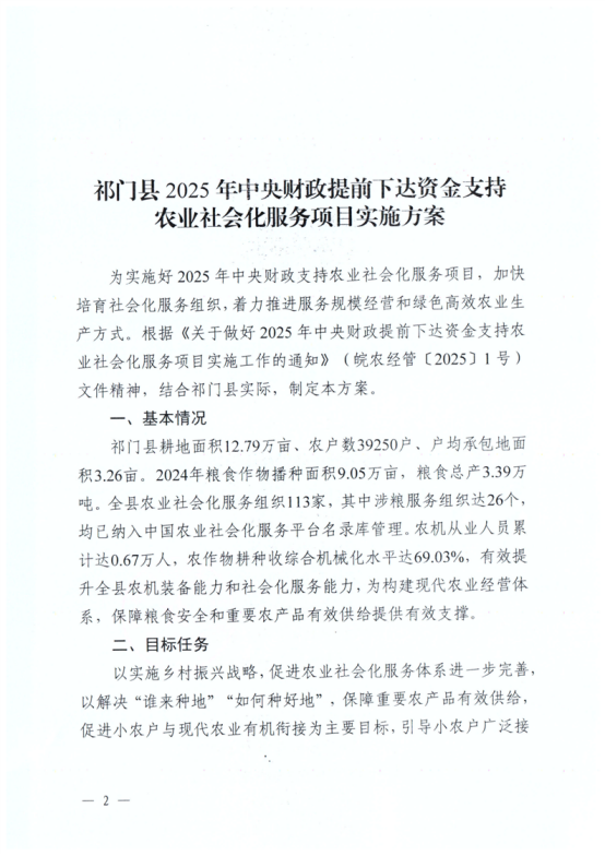 关于印发《祁门县2025年中央财政提前下达资金支持农业社会化服务项目实施方案》的通知