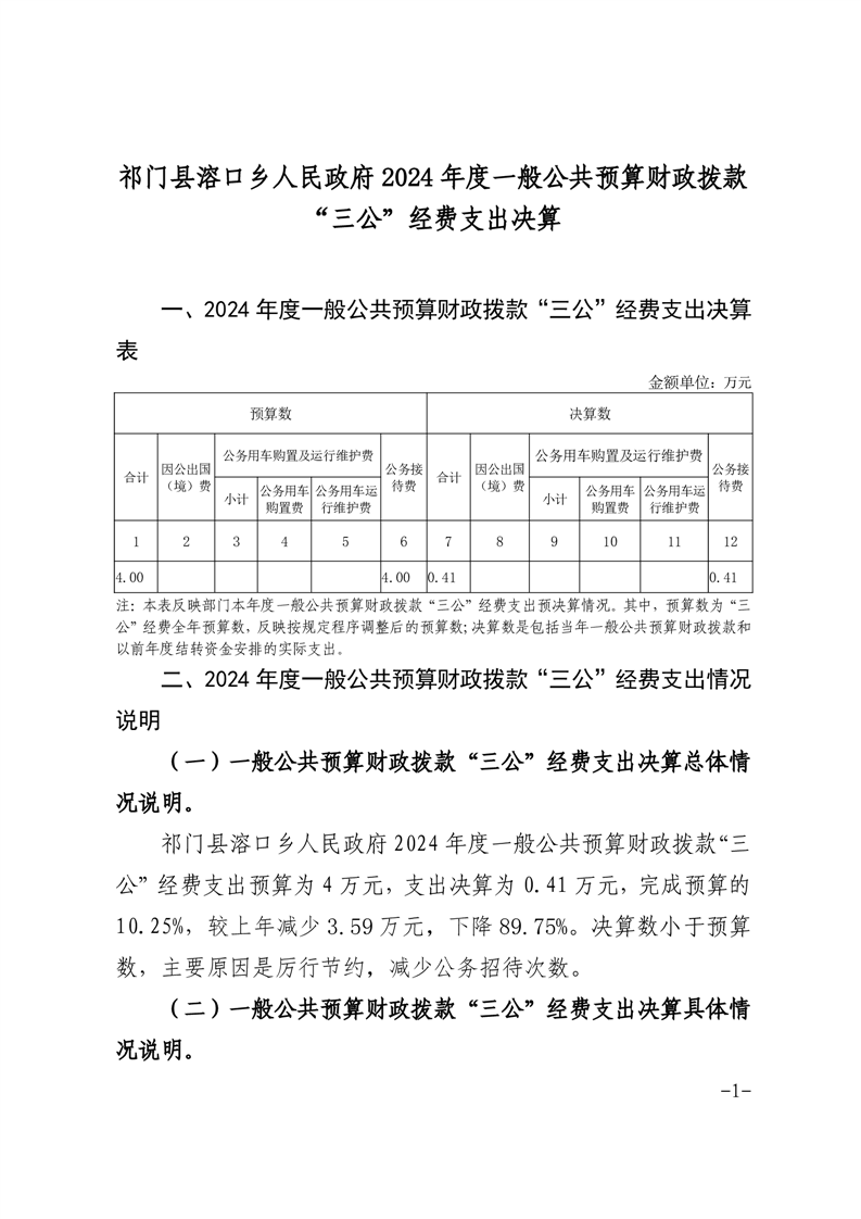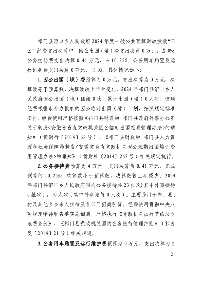 祁门县溶口乡人民政府2024年度一般公共预算财政拨款“三公”经费支出决算