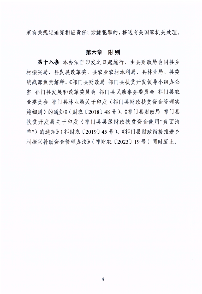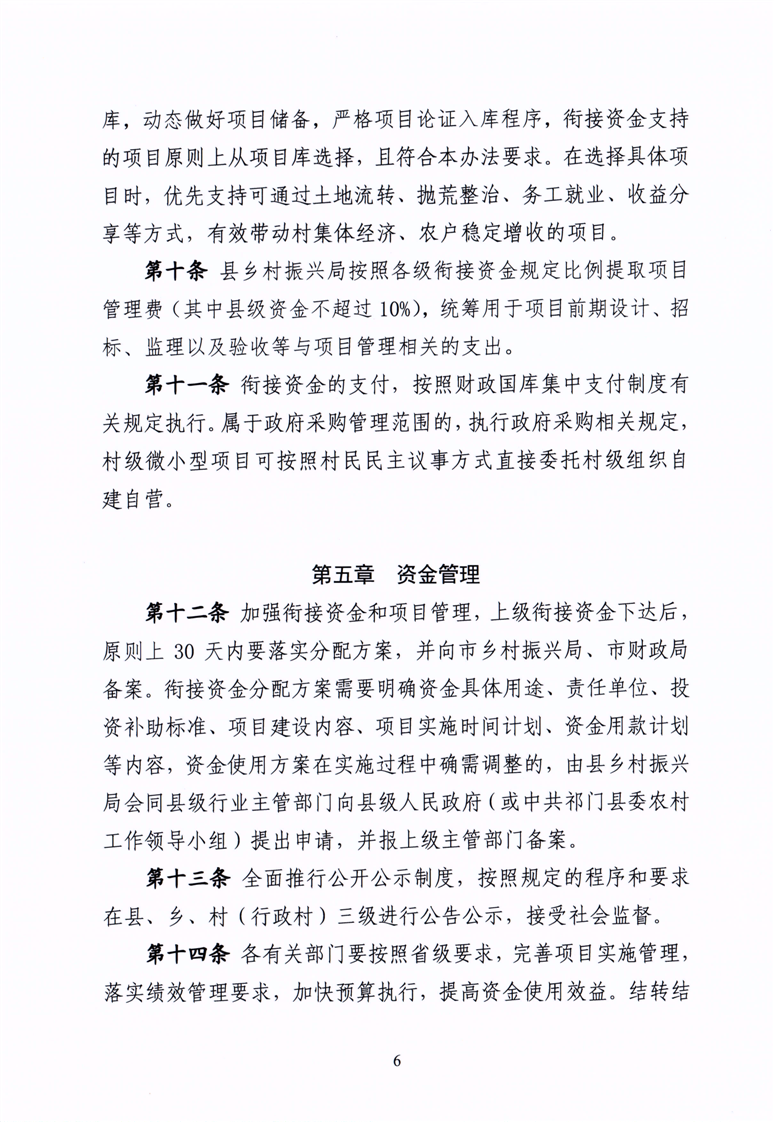 祁门县财政衔接推进乡村振兴补助资金管理办法