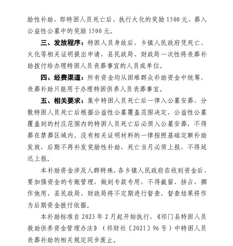 关于调整特困人员死亡后一次性丧葬补助的通知