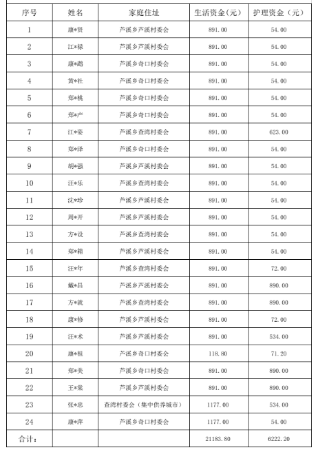 2025年12月分散、集中特困生活与照料护理资金明细