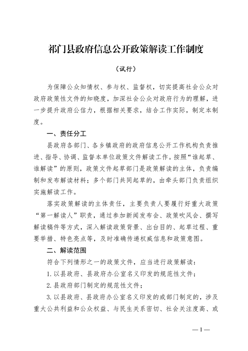 【本级制度】祁门县政府信息公开政策解读工作制度(试行)