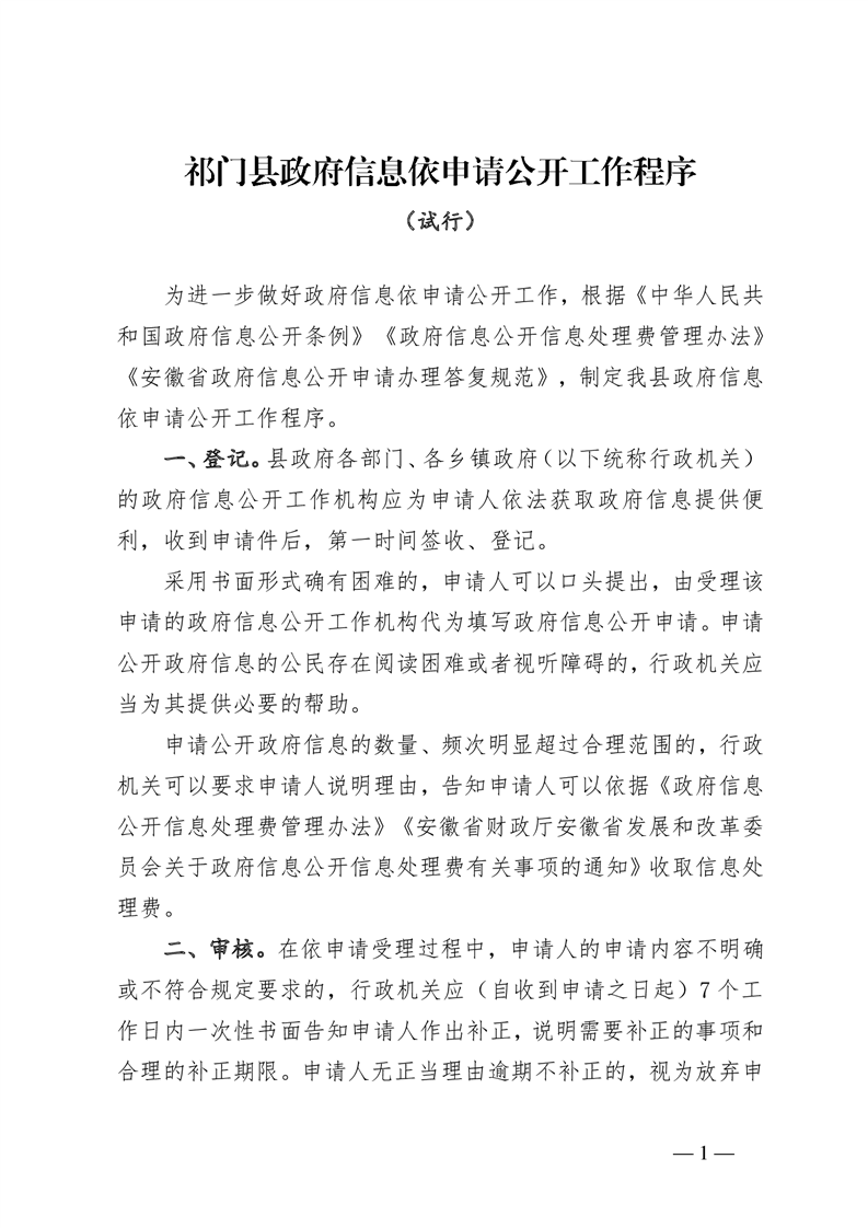 【本级制度】祁门县政府信息依申请公开工作程序(试行)