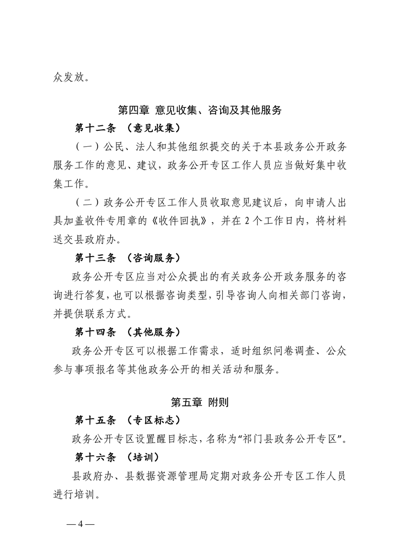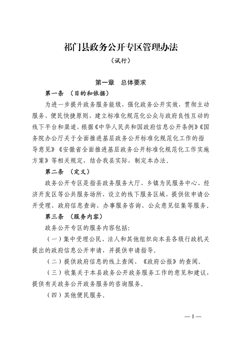 【本级制度】祁门县政务公开专区管理办法(试行)