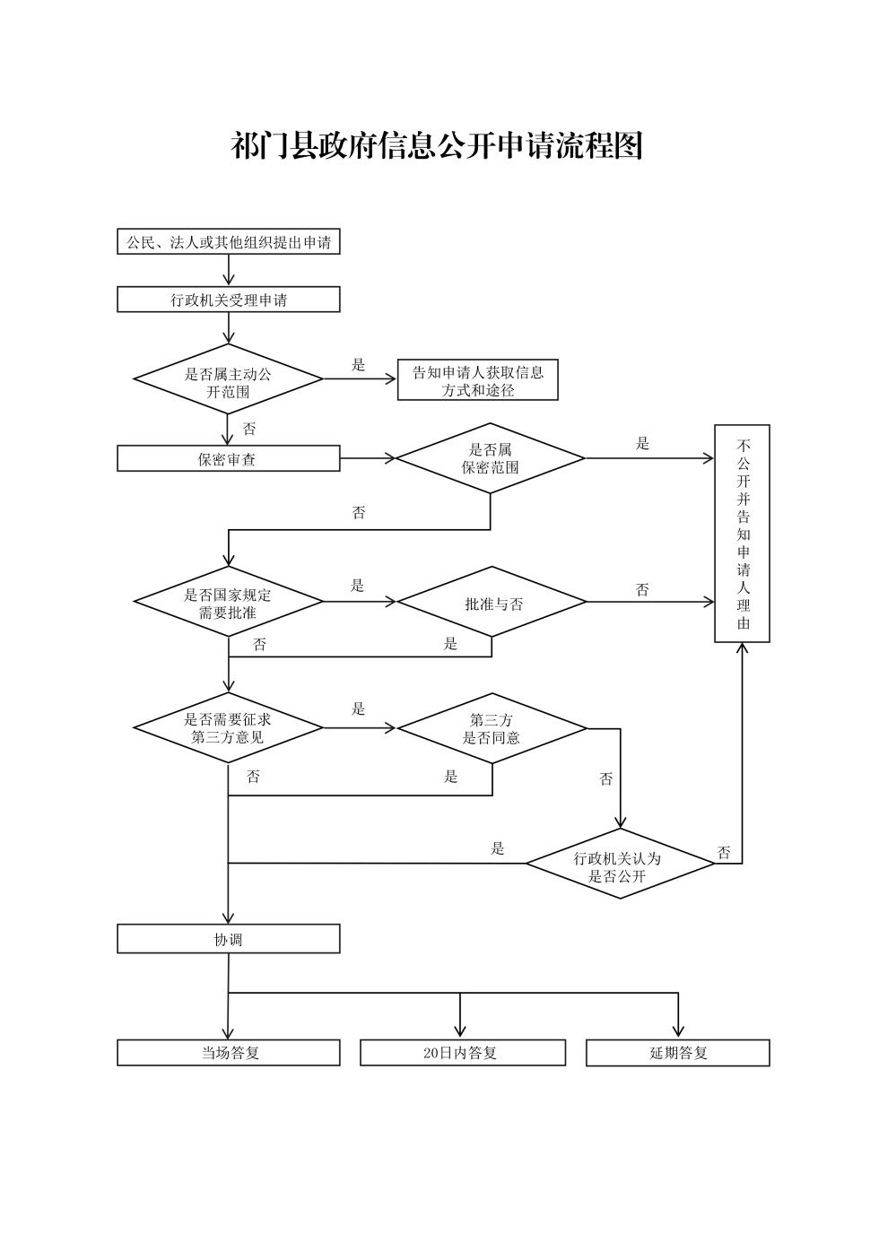 【流程图】祁门县政府信息公开申请流程图