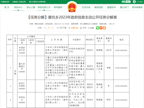 祁门县箬坑乡人民政府2023年政府信息公开工作年度报告