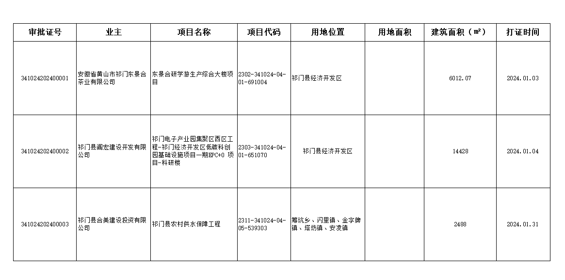 祁门县自然资源和规划局2024年1月份建设用地规划许可信息
