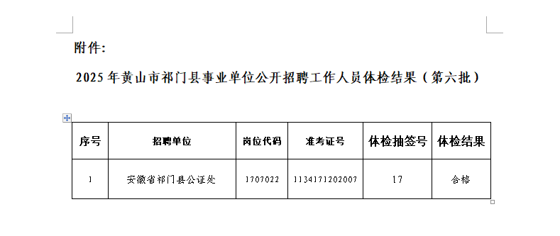 附件:2025年黄山市祁门县事业单位公开招聘工作人员体检结果(第六批)
