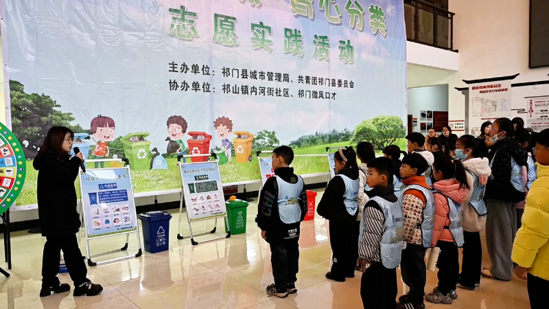 12月13日,由县城市管理局、团县委主办,内河街社区协办的“蓝映梅城青心分类”垃圾分类志愿实践活动在凤凰小区举行。