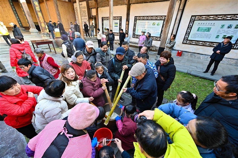 1月10日,祁门县闪里镇桃源村沉浸在一片欢腾之中。古祠堂内,一场充满乡土气息的打糍粑迎新年活动热闹举行,吸引了众多村民和游客参与体验。