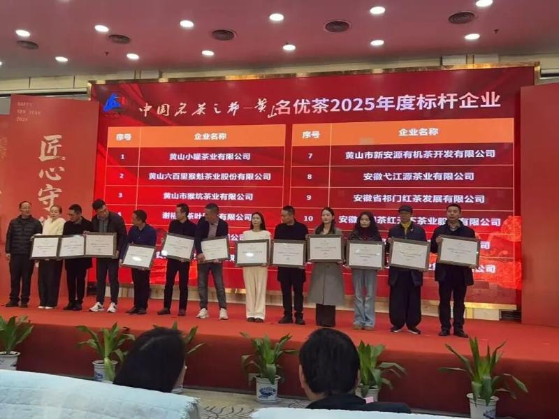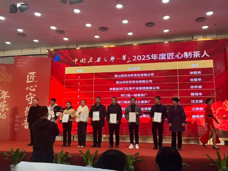 1月27日,“匠心守徽韵 聚力兴茶企”黄山市茶叶行业协会二届二次会员代表大会在屯溪举行。祁门红茶集团凭借在产业引领、品质坚守与匠心传承等方面的卓越表现,获评“名优茶2025年度标杆企业”,并新增为副会长单位,祁门红茶集团副总经理任仲滋被授予2025年度“匠心制茶人”荣誉称号。