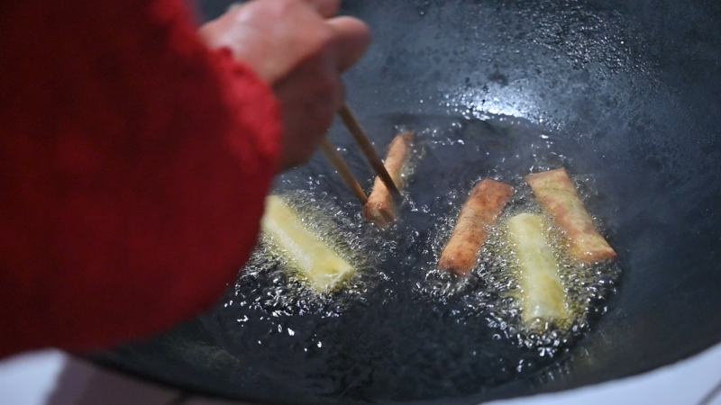 “春卷吃起来香脆可口,吃春卷称为‘咬春’,蕴含着祈求吉祥如意的美好寓意,图个好兆头。”鲍小定介绍说。