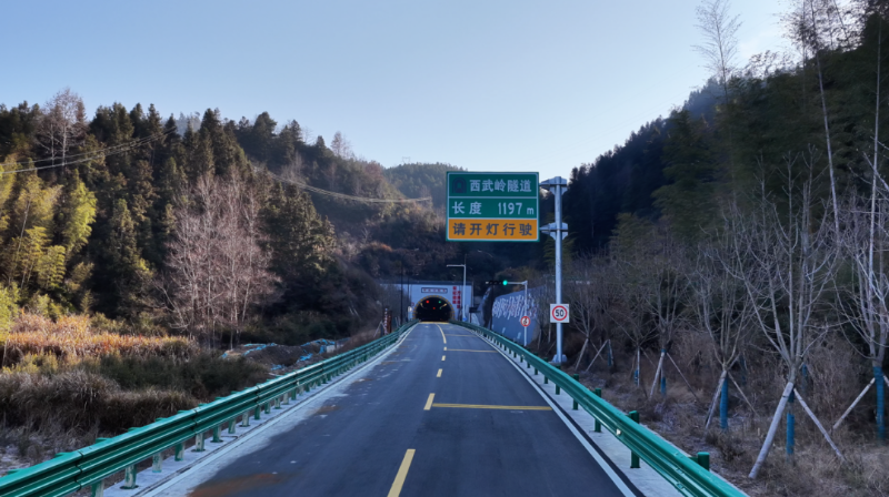 西武岭隧道横跨祁门、黟县两县,是S477祁黟公路改建工程的重要节点。隧道全长1197米,为单洞双向两车道。通车后,从祁门经金字牌至黟县不再需要翻越西武岭,行车时间缩短至2分钟左右。
