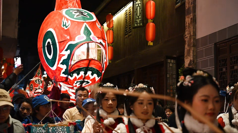 傩舞映古巷 夜游贺新春