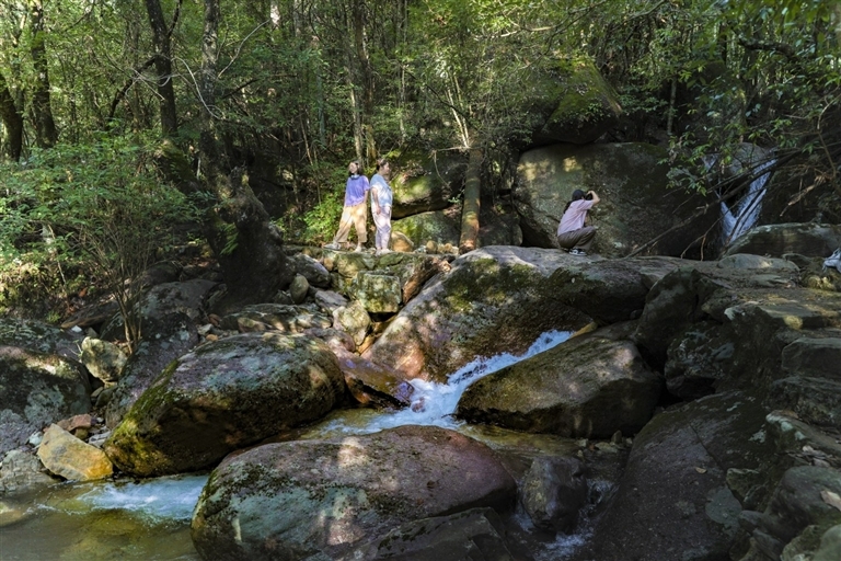 时光流转,过度砍伐让山林渐显荒芜,曾为生计奔波的冯家后人,率先觉醒了护林的初心。从冯根长的父辈开始,家族便停下了斧锯,转而拿起锄头铁锹,在古道沿线的荒坡上种树造林。今年76岁的冯根长从1991年起便一株株栽下杉树、松树、板栗、油茶,将昔日因砍伐留下的斑秃山体的五百亩山场一点点补成葱郁林海。冯家数代人接力守护,曾经的伐木人成了深山的护林者,如今90%的森林覆盖率让冯家顶成了名副其实的“绿色明珠”,也为日后的旅游发展埋下了最珍贵的伏笔。