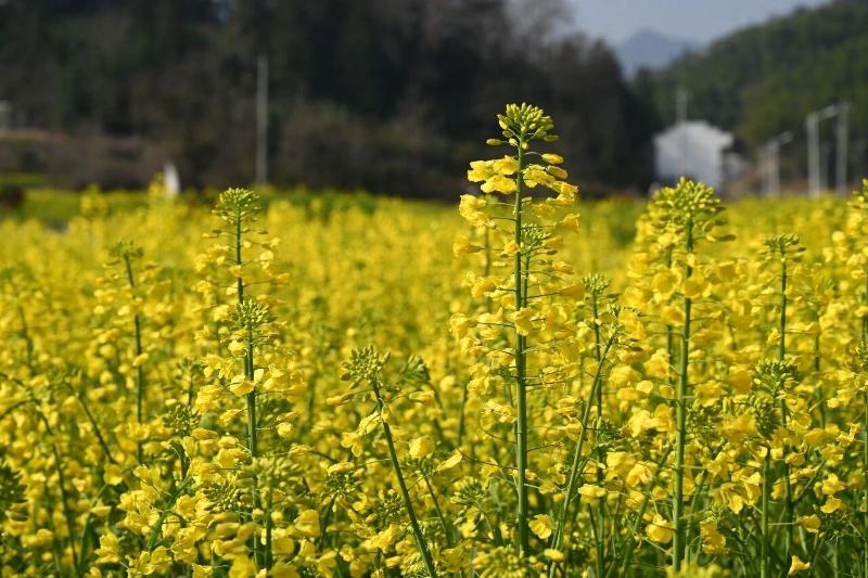 满目金黄香百里,一方春色惹人醉。在祁门县,金灿灿的油菜花竞相绽放,吸引着游客前来踏青赏花、享受春光。