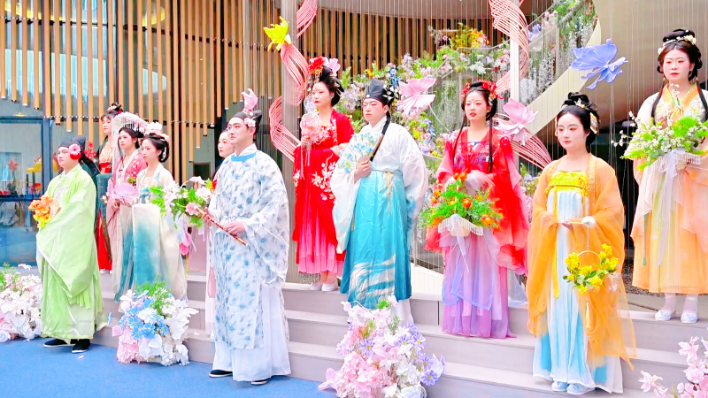 活动现场古韵悠扬、春意盎然。十二位花神身着华美汉服在茶山缓步巡游,衣袂翩跹、风姿雅致,成为茶园中一道靓丽的风景线。花神们与前来游玩的游客亲切互动、合影留念,一起定格春日的美好瞬间。