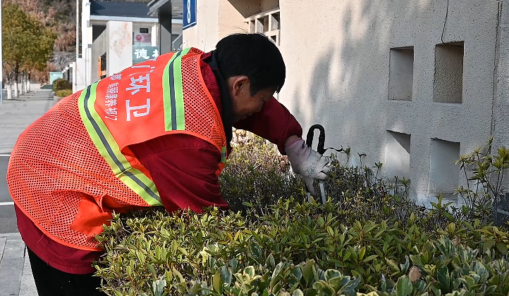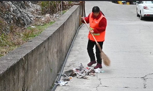 程雪香是一家保洁公司的环卫工人,负责着两个小区及路段的保洁工作。过年这段时间,她每天依旧身着统一工装,手持扫帚、簸箕,弯腰俯身对负责区域进行全面清扫,纸屑、杂物被逐一清理干净,不留任何死角。“我们要及时把自己负责的区域垃圾及时清运掉,把周边环境打扫得干干净净的,保护好我们的生态,让大家安安心心、快快乐乐过新年。”虽然辛苦,但她无怨无悔。