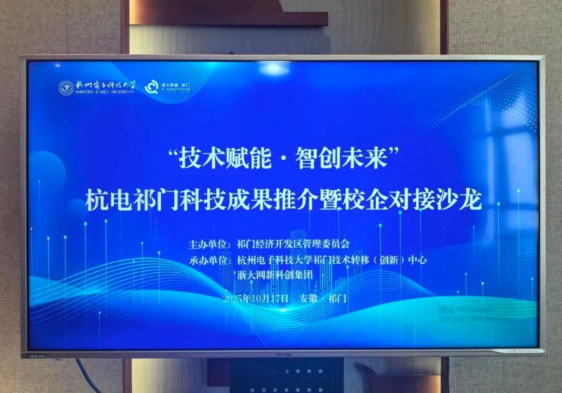 为深化校企合作,推动科技成果转化,2025年10月17日上午,由祁门经济开发区主办,杭州电子科技大学祁门技术转移(创新)中心与浙大网新科创集团共同承办的“技术赋能·智创未来”杭电祁门科技成果推介暨校企对接沙龙成功举办。经开区领导、杭电专家代表、企业负责人齐聚一堂,以技术为桥,以需求为引,共探校企合作、产学研融合的新路径。